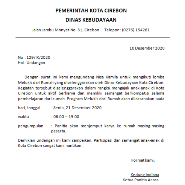 Tuliskan kalimat efektif untuk melengkapi penutup surat undangan di atas. We did not find results for: Check spelling or type a new query. Maybe you would like to learn more about one of these?
